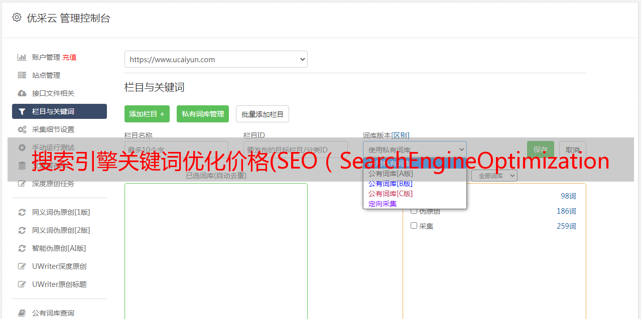 优采云 发布时间: 2021-10-11 15:05搜索引擎关键词优化价格(SEO(SearchEngineOptimizationOptimization):汉译为搜索引擎优化)