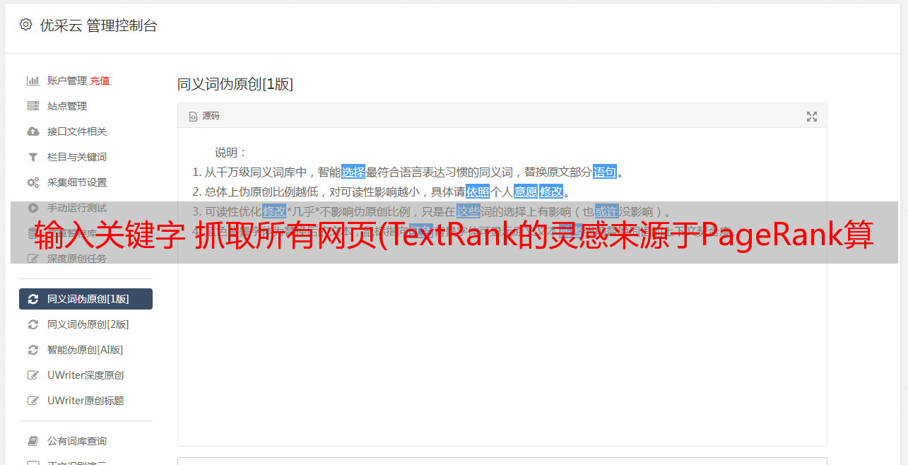 优采云 发布时间: 2021-10-11 20:37输入关键字 抓取所有网页(TextRank的灵感来源于PageRank算法(图)的网页重要度排序)