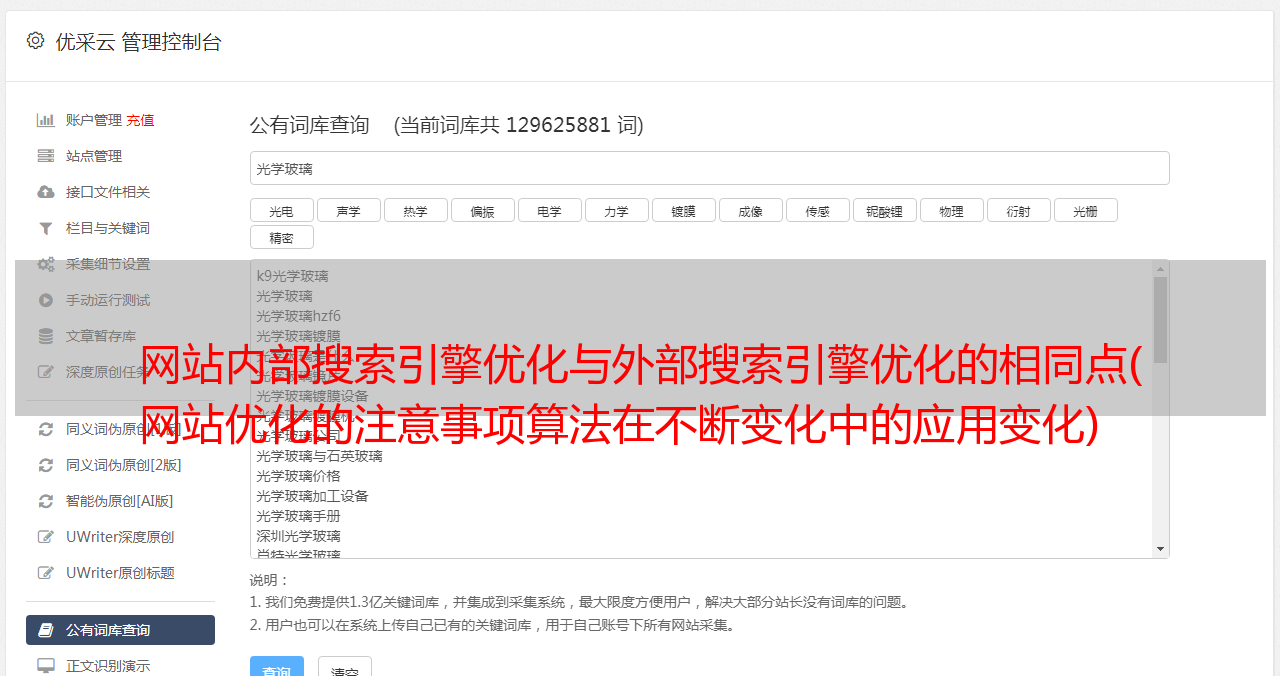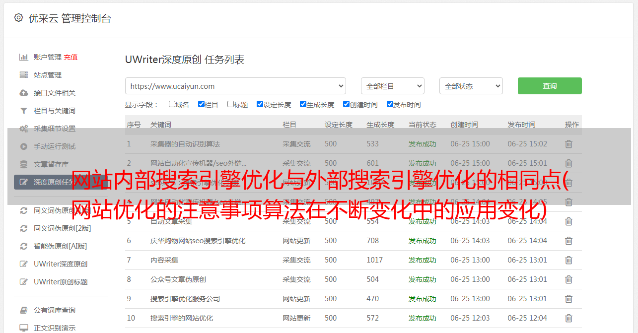 优采云 发布时间: 2021-10-11 22:15网站内部搜索引擎优化与外部搜索引擎优化的相同点(