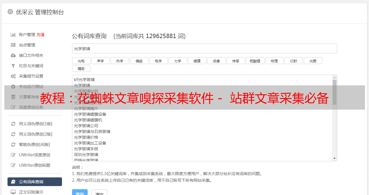 花蜘蛛文章嗅探采集软件句子库,段落库,文章库功能。