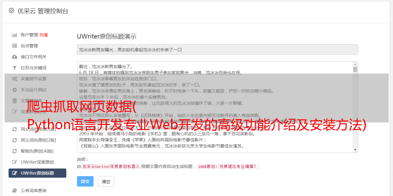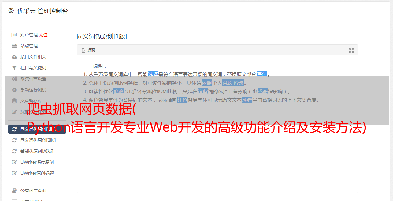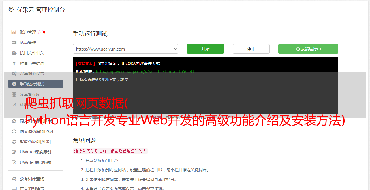 爬虫抓取网页数据( Python语言开发专业Web开发的高级功能介绍及安装方法)