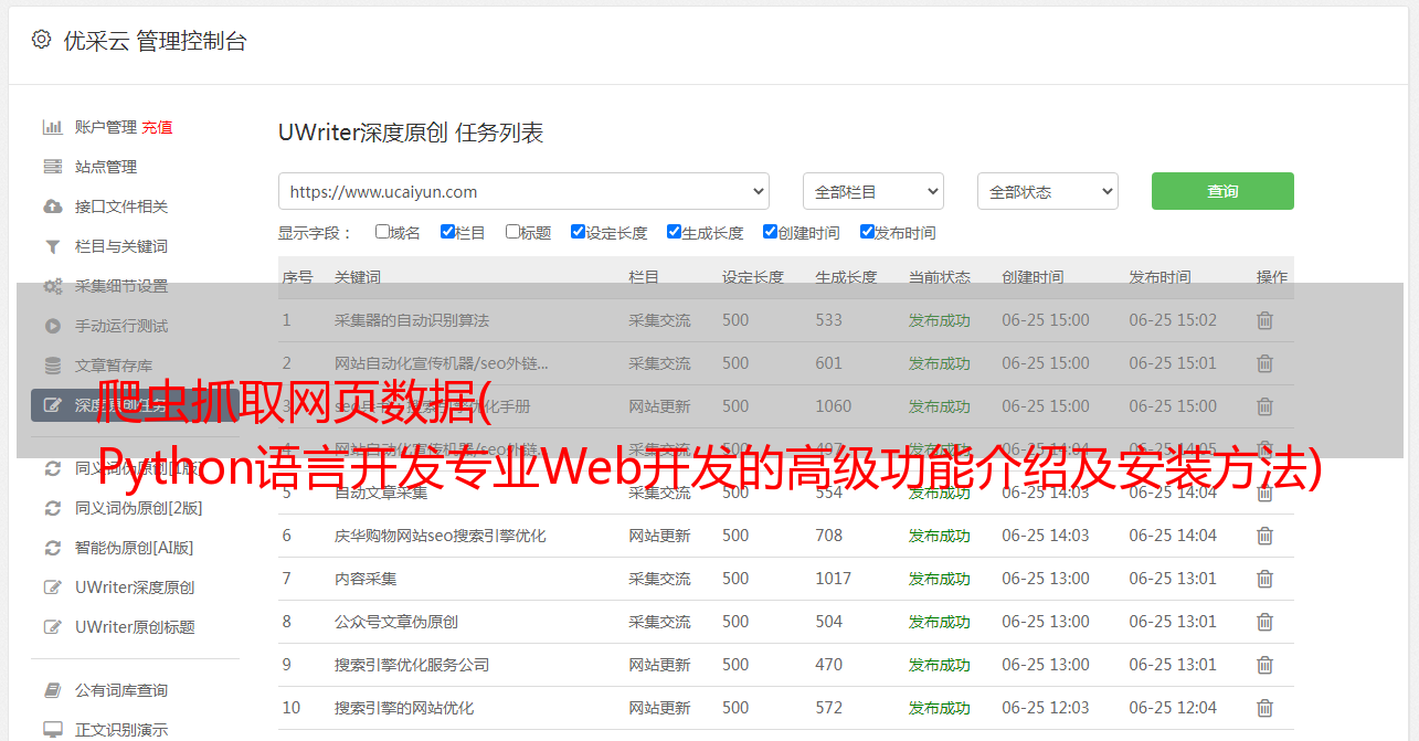 优采云 发布时间: 2021-10-12 07:17爬虫抓取网页数据(