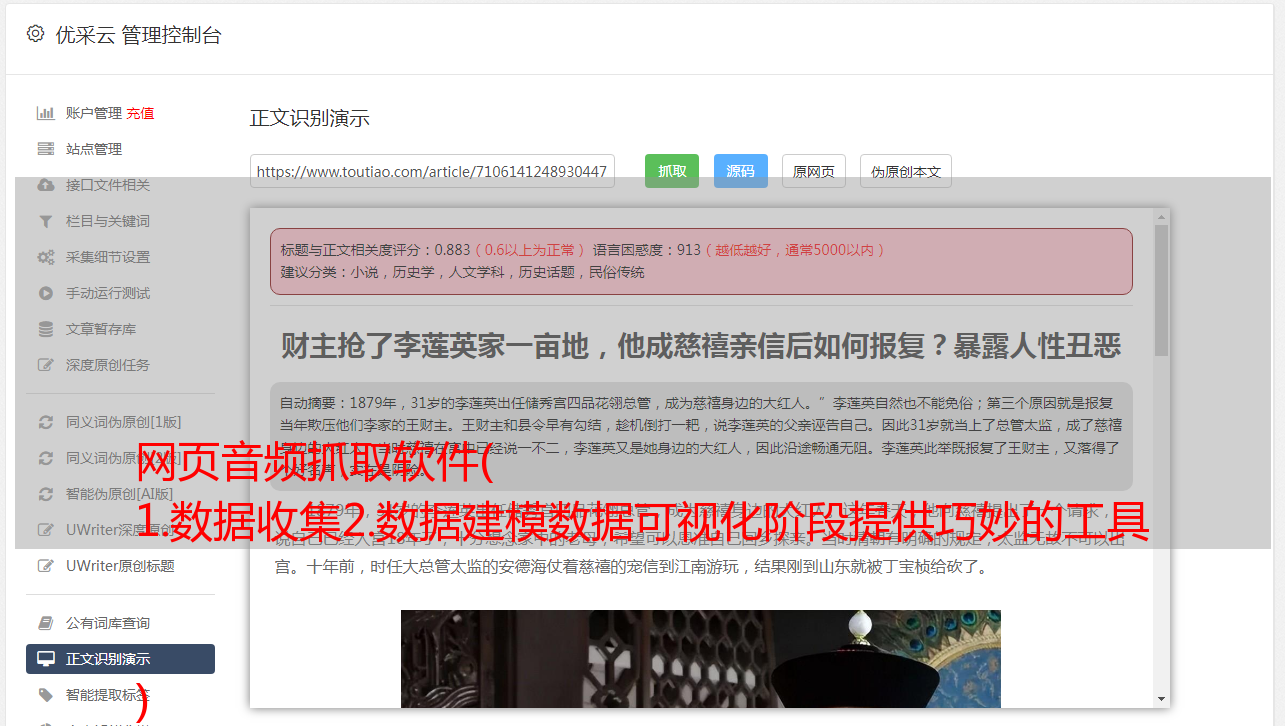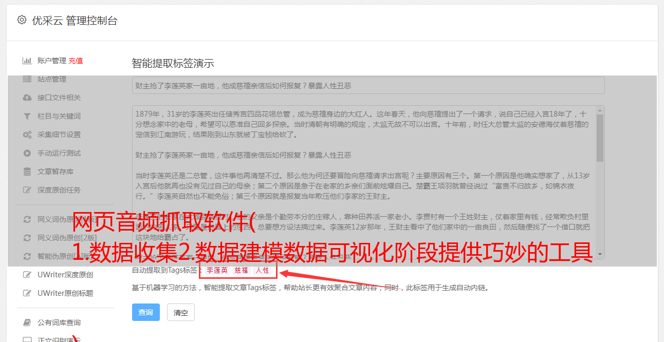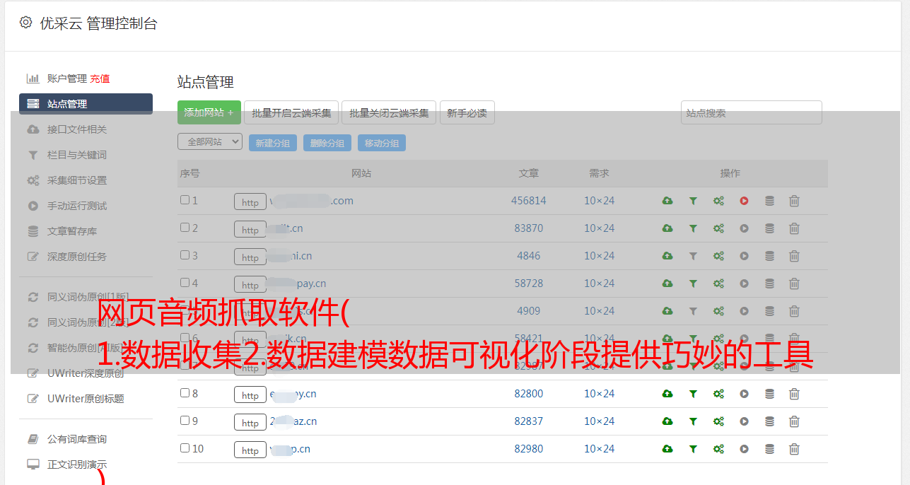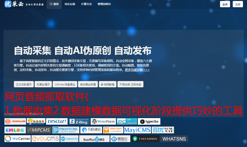 网页音频抓取软件( 1.数据收集2.数据建模数据可视化阶段提供巧妙的工具 )