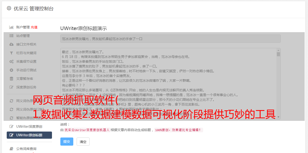 优采云 发布时间: 2021-10-12 13:15网页音频抓取软件(