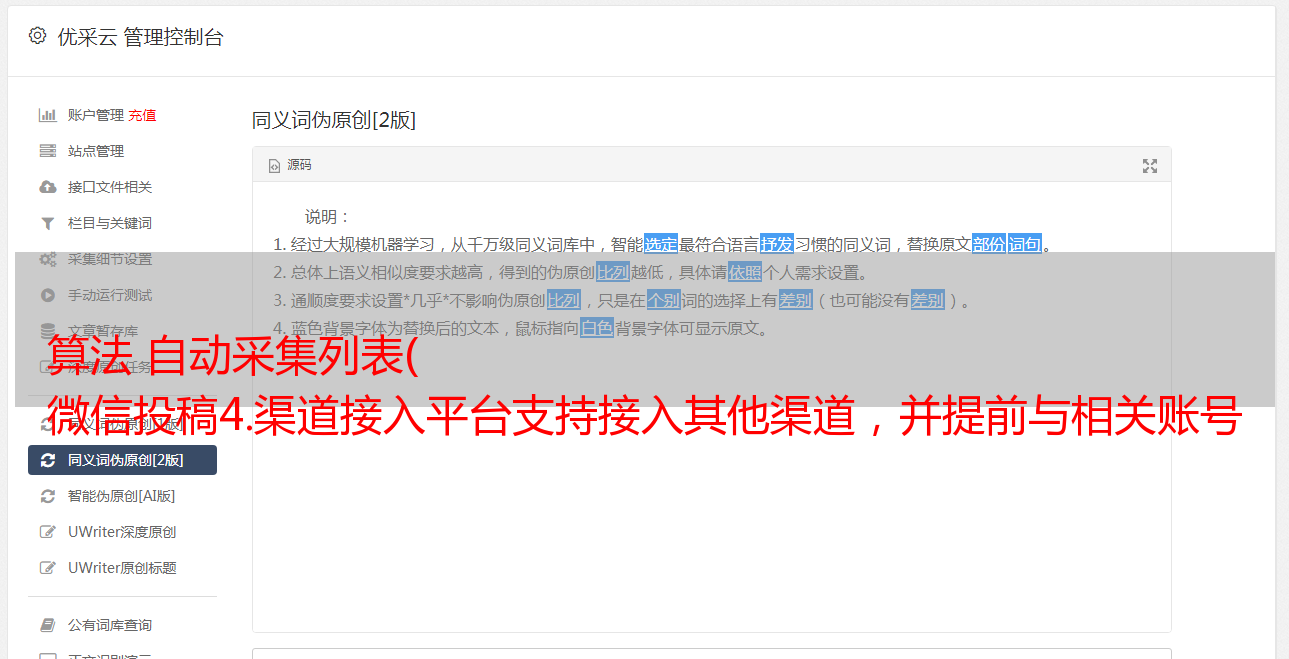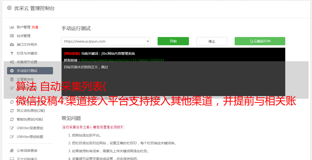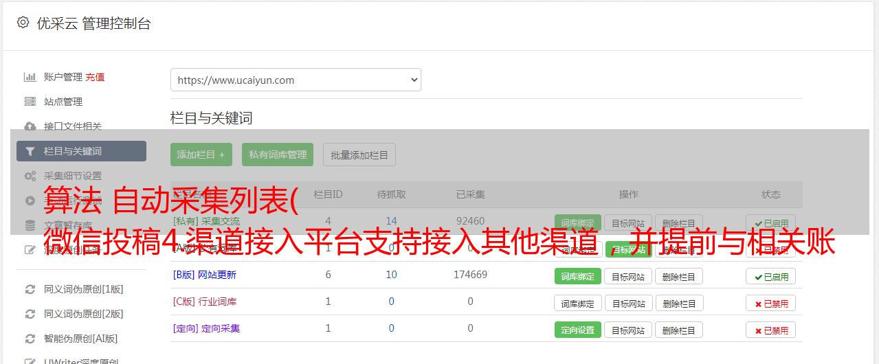 算法 自动采集列表( 微信投稿4.渠道接入平台支持接入其他渠道,并提前与相关账号进行绑定)