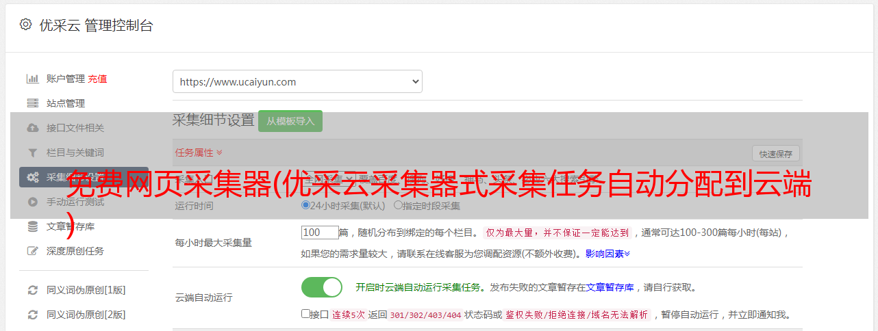 采集 任务自动运行,可以在指定时间段内自动采集,还支持实时采集,速度快到一分钟一次。