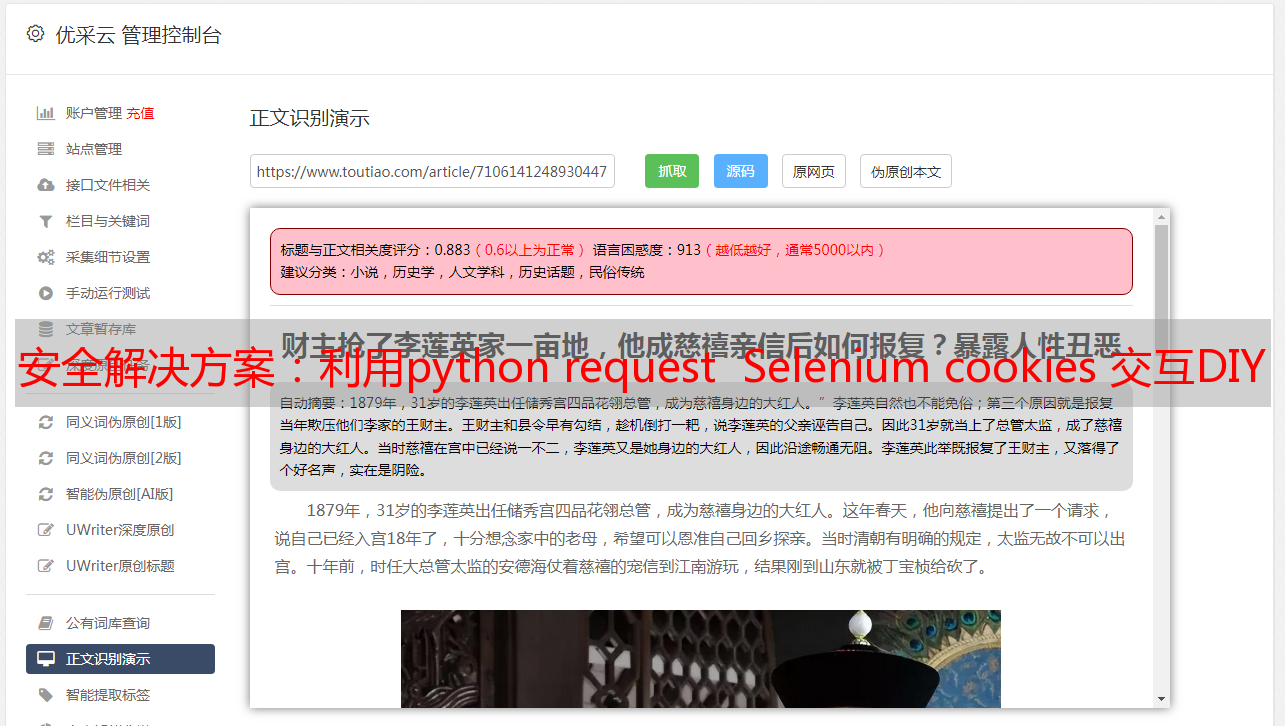 安全解决方案:利用python request Selenium cookies 交互DIY