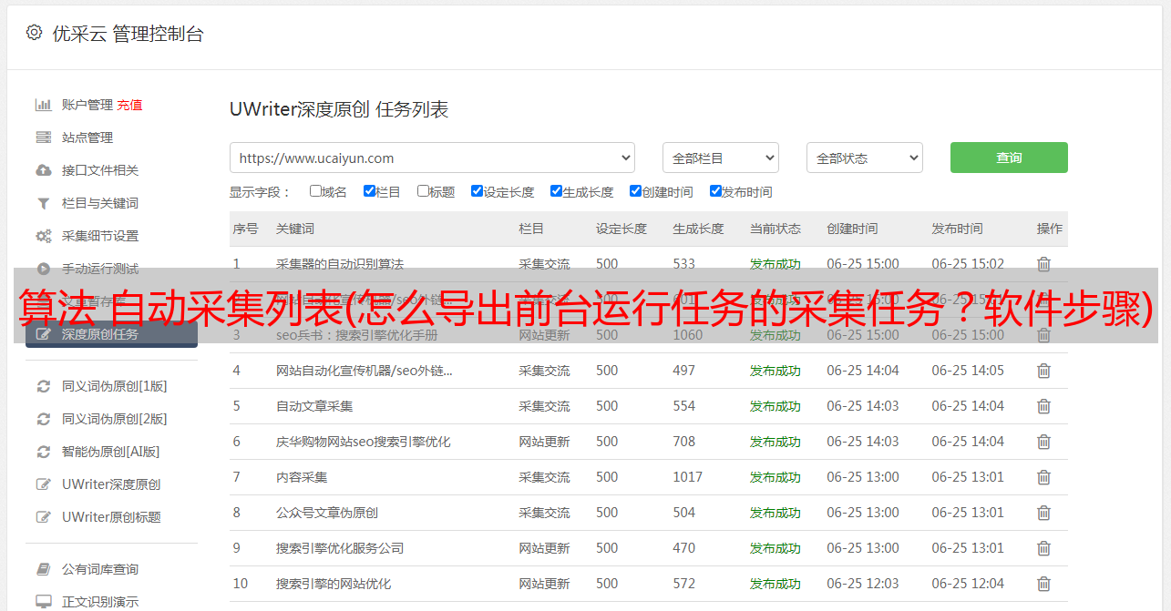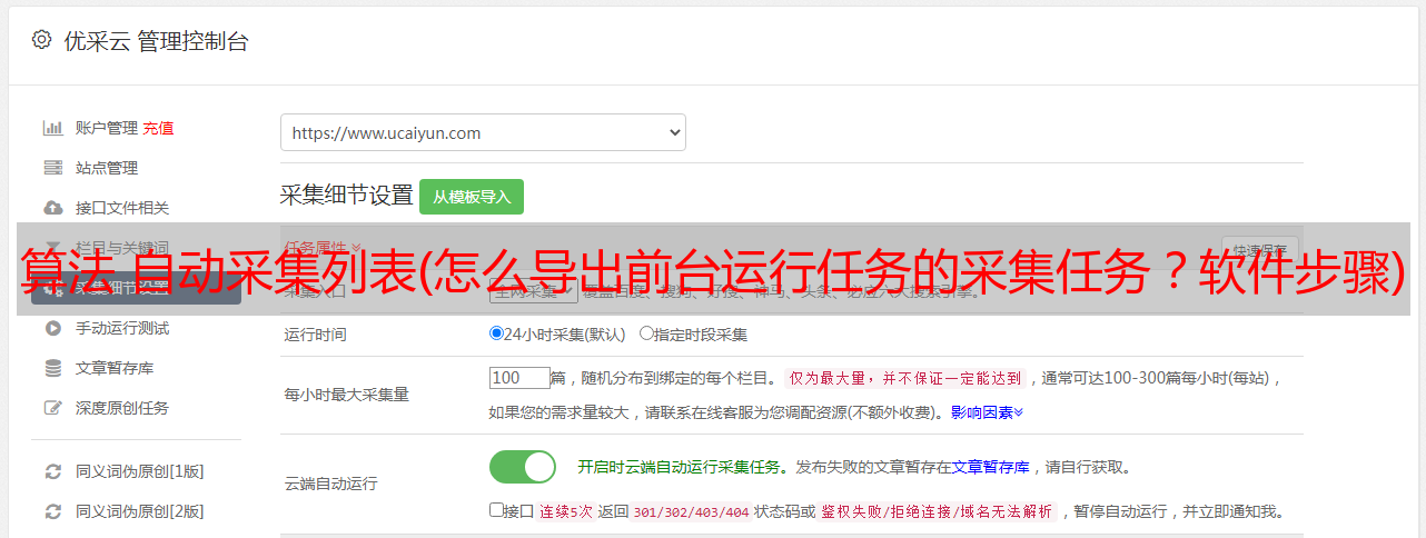 优采云 发布时间: 2021-10-13 15:25算法 自动采集列表(怎么导出前台运行任务的采集任务?软件步骤)