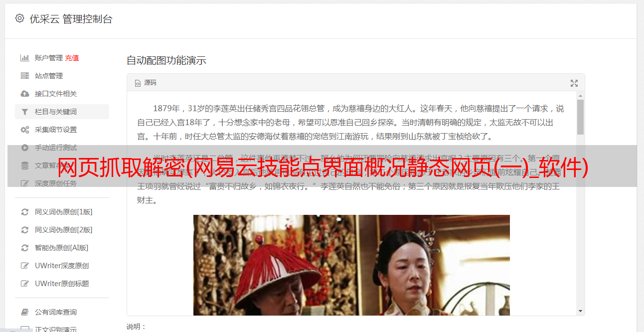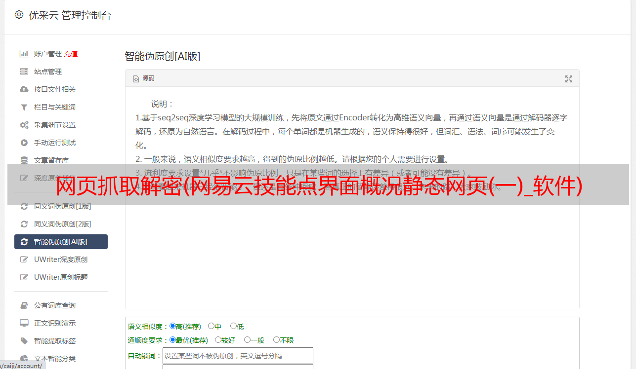 优采云 发布时间: 2021-10-13 17:38网页抓取解密(网易云技能点界面概况静态网页(一)_软件)