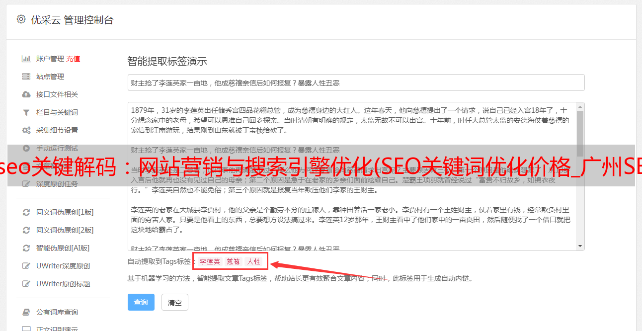 优采云 发布时间: 2021-10-13 19:10seo关键解码:网站营销与搜索引擎优化(SEO关键词优化价格_广州SEO:286