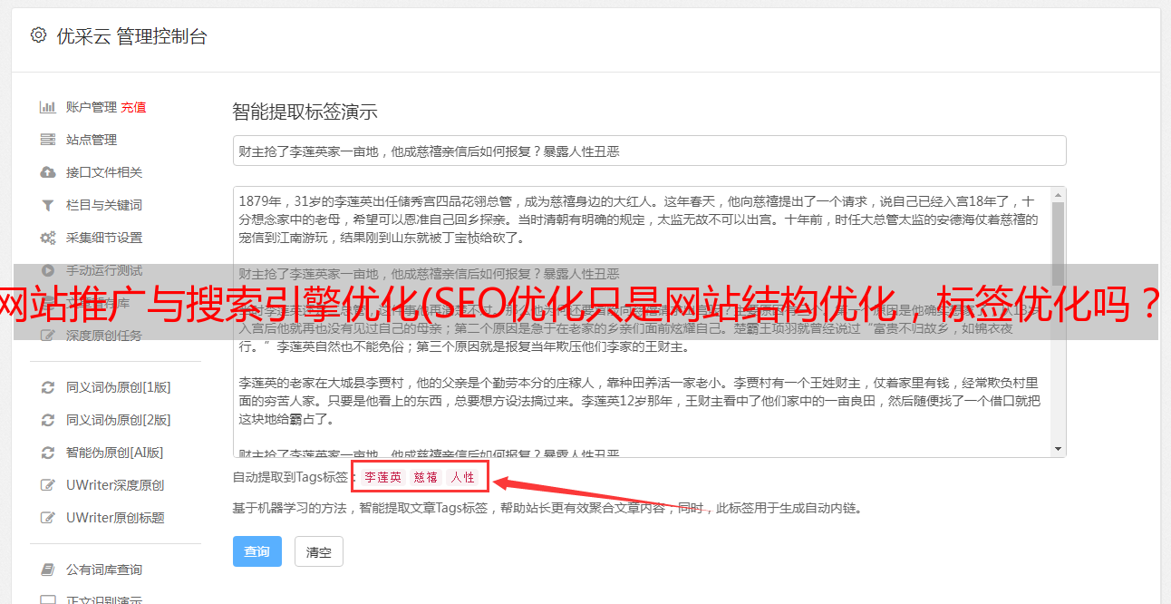 优采云 发布时间: 2021-10-13 23:33网站推广与搜索引擎优化(SEO优化只是网站结构优化,标签优化吗?(图)