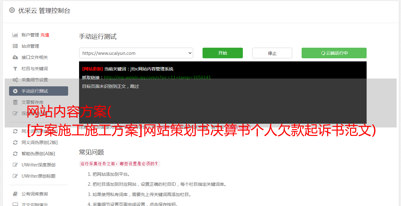 优采云 发布时间: 2021-10-14 03:41网站内容方案(