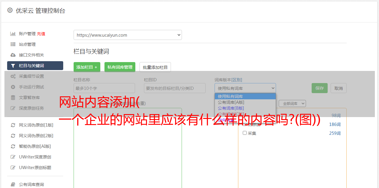 优采云 发布时间: 2021-10-14 08:20网站内容添加(