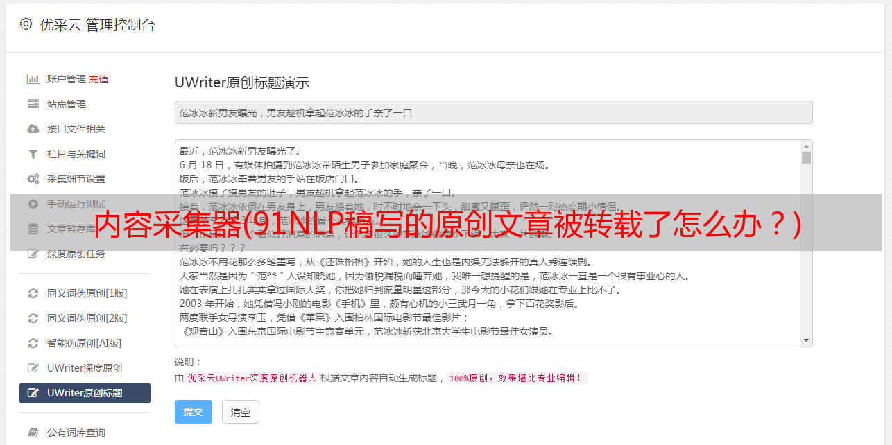 内容采集器(91NLP稿写的原创文章被转载了怎么办?)