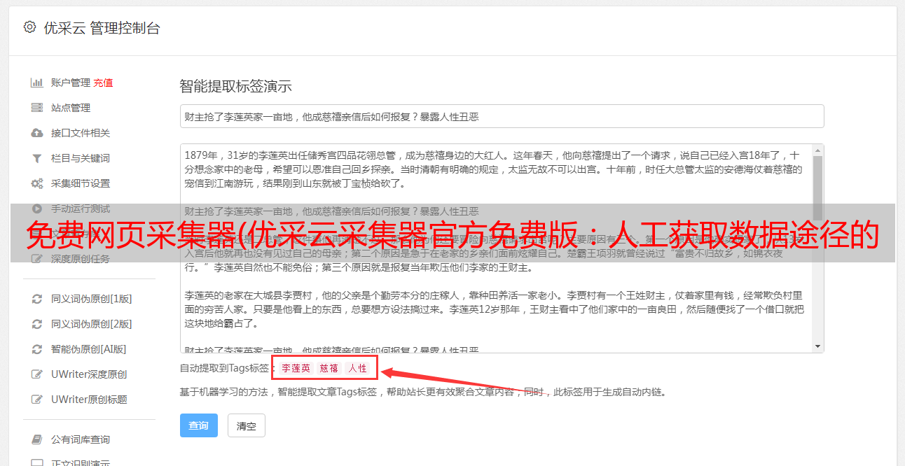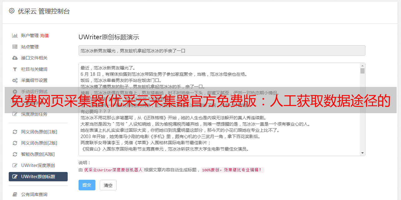 免费网页采集器(优采云采集器官方免费版:人工获取数据途径的数十倍下载体验)