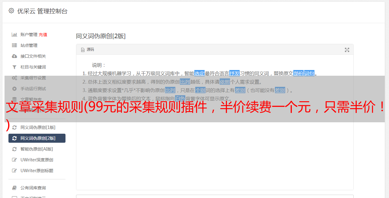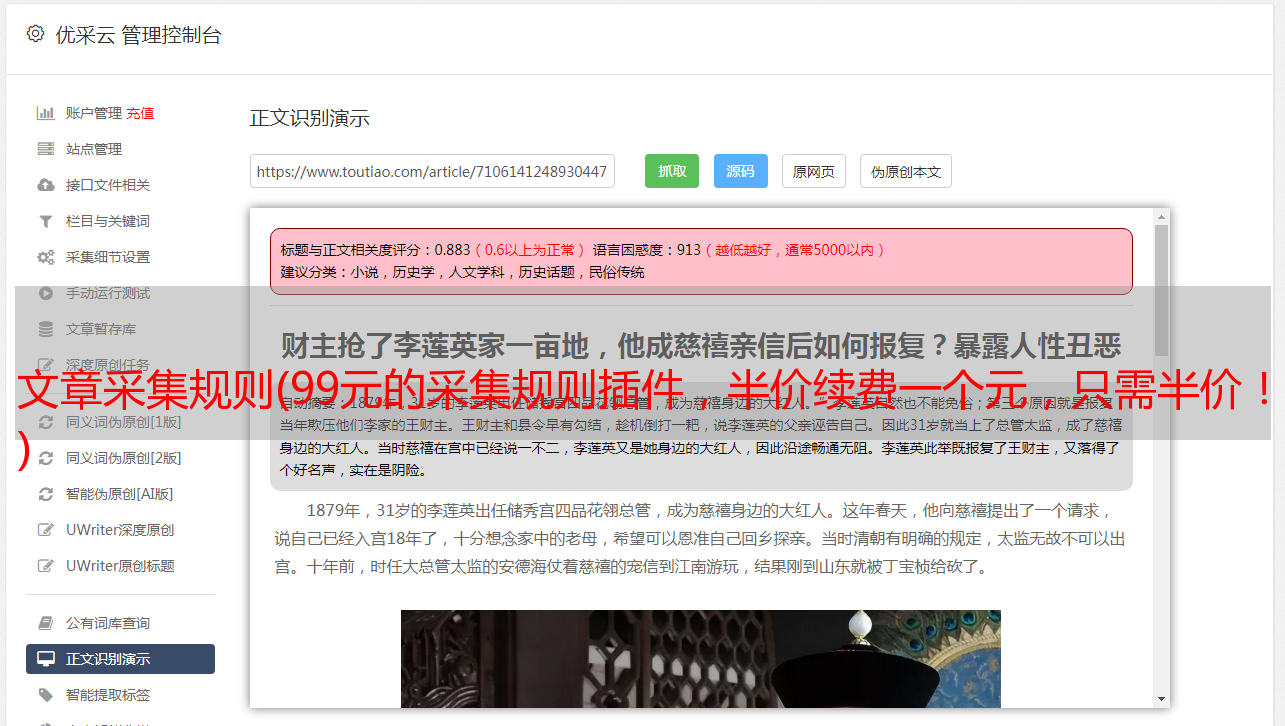 优采云 发布时间: 2021-10-15 09:08文章采集规则(99元的采集规则插件,半价续费一个元,只需半价!