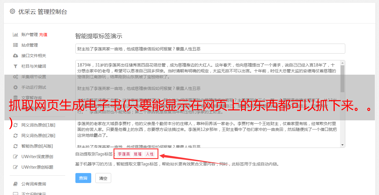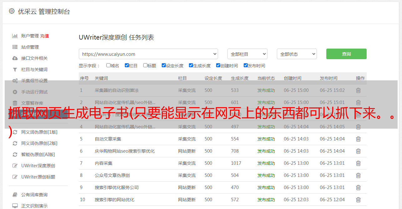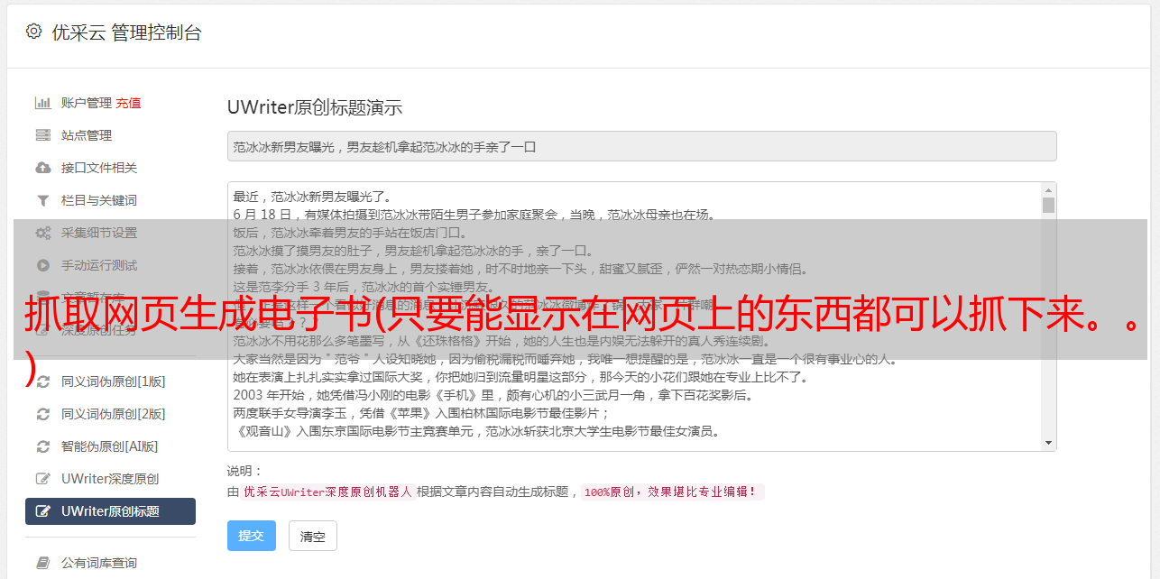 优采云 发布时间: 2021-10-15 11:08抓取网页生成电子书(只要能显示在网页上的东西都可以抓下来。。