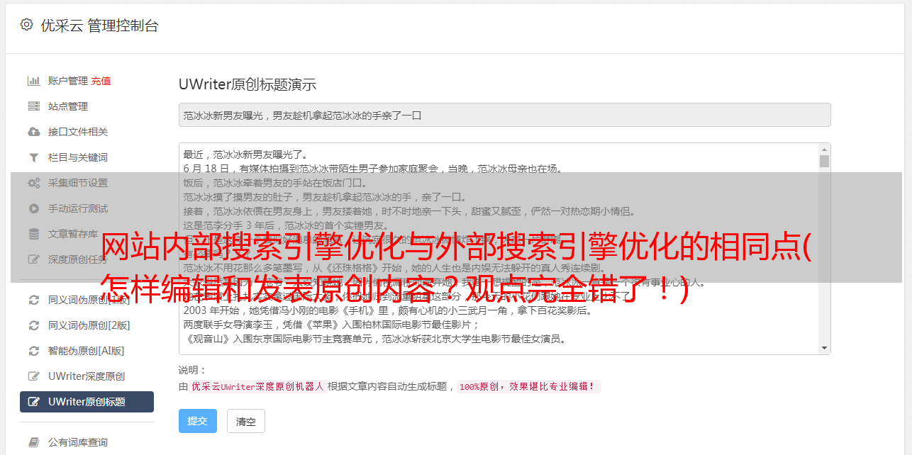 网站内部搜索引擎优化与外部搜索引擎优化的相同点( 怎样编辑和发表原创内容?观点完全错了!)