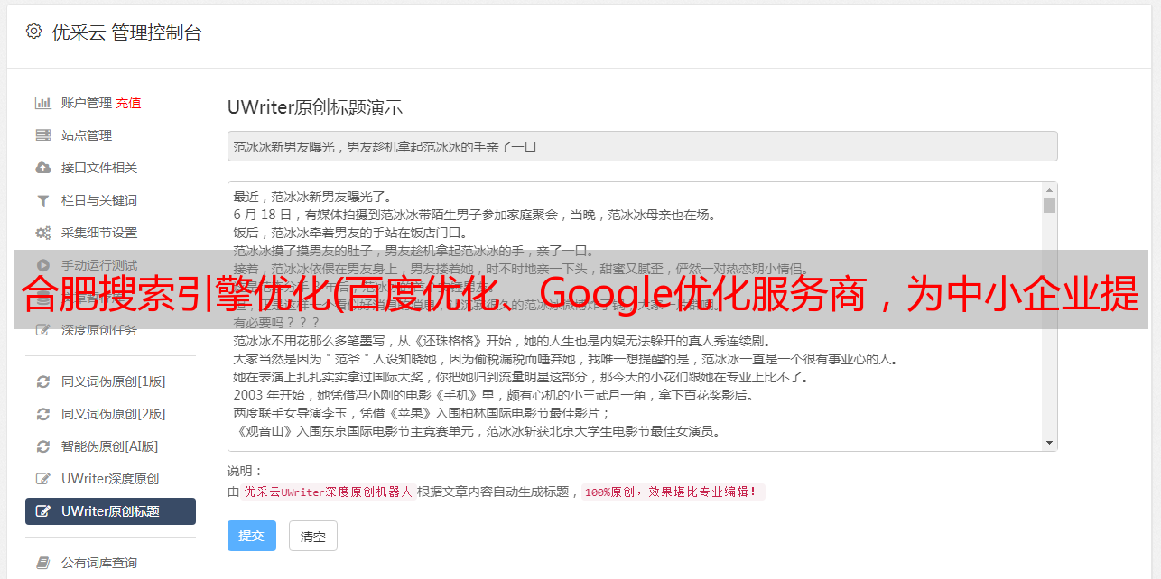 优采云 发布时间: 2021-10-15 14:16合肥搜索引擎优化(百度优化、Google优化服务商,为中小企业提供专业的SEO服务!)