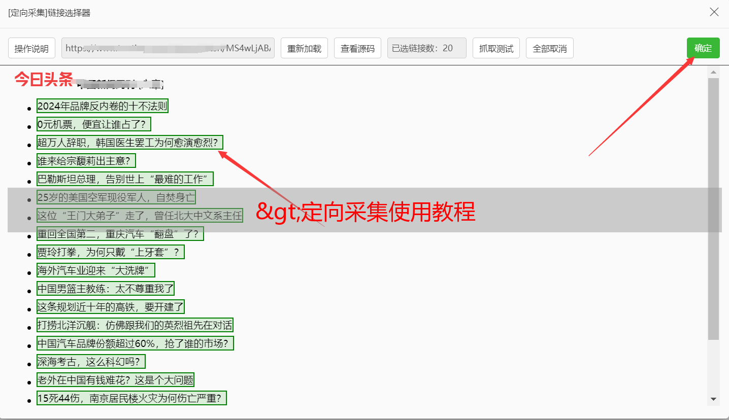 只要能弹出文章列表,选中你想要的文章就可以开始采集
