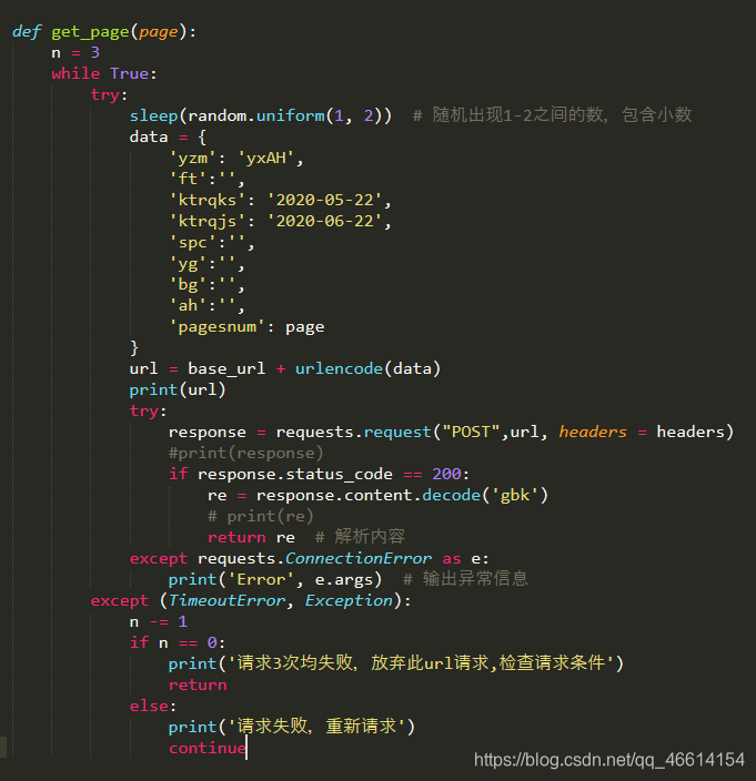 分析完这些参数,我们就确定了我们需要请求的URL地址。这里的URL不像静态页面中通过程序自动获取a标签中的href,而是需要我们自动设置。我们可以通过覆盖 start_requests 方法 指定要获取的 url。