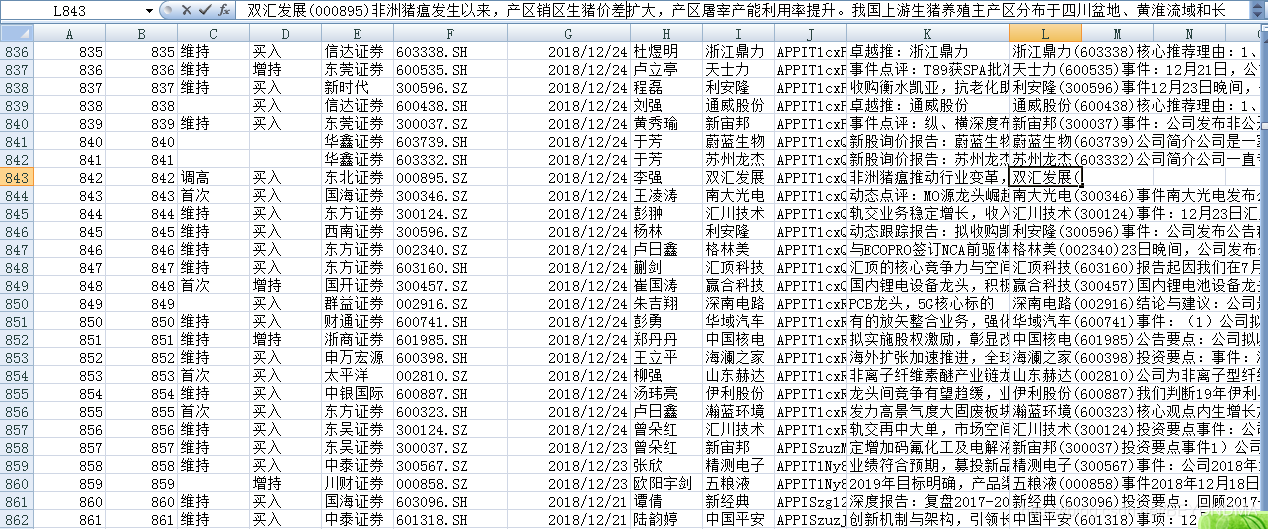 最近一直在研究R语言结合自然语言处理来分析公司研究报告相关的话题。不过由于单位的数据不能拿出来研究,只能周末在家看看怎么从网上抓取相关数据,效果还不错。各大券商的评级、推荐时间、股票代码、研究报告正文均可在线检索。具体图片如下,示例可在以下网址下载: