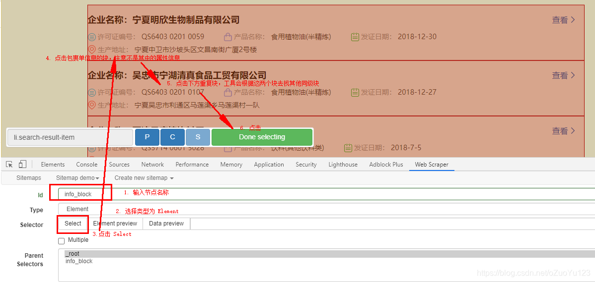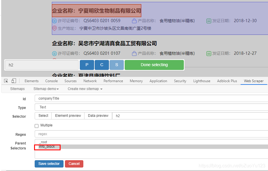 单击“添加新选择器”以创建一个选择器,该选择器告诉插件应选择哪个节点. 对于在此类列表页面上也具有信息的页面,我们将每条信息视为一个块,其中收录各种属性信息. 创建方法如下: