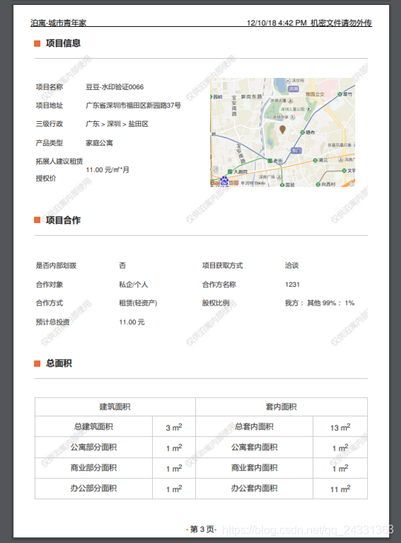 终于实现了水印的效果。需要提醒的是,在做水印的时候,我们网页的效果和pdf的效果可能会有差距。生成pdf后,水印的间距会变差。这时候可以调整你的网页窗口大小,让你的网页收紧生成的pdf,然后调整水印,让最终生成的pdf准确无误,包括上面提到的封面。偏差)。