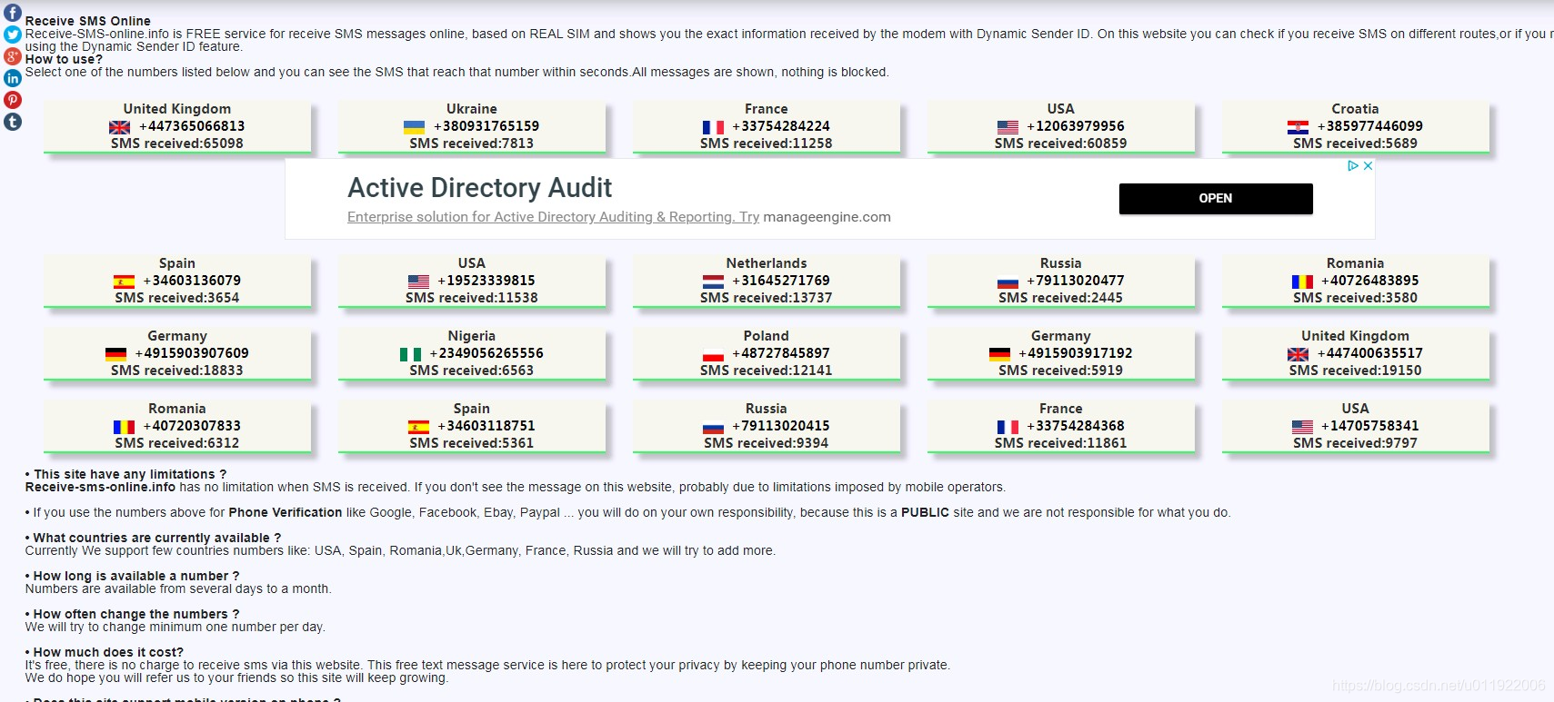 平台是用手机号注册的用户,是一种注册门槛高的方法,但也有破解的方法。谷歌短信服务,发现网上有大量免费验证码获取手机号,如下图。
