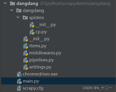 一定要把“chromedriver.exe”和新创建的“main.py”放在“当当”项目的根目录下!!!