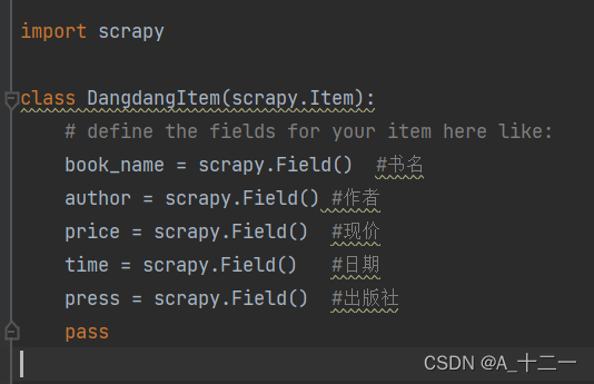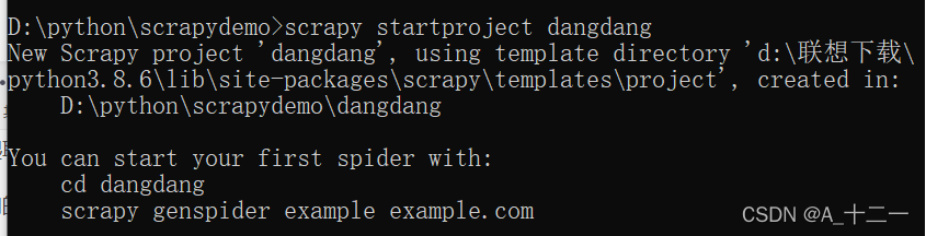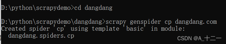 一、新建项目和爬虫文件,搭建scrapy框架(这里我们将项目命名为“当当”)