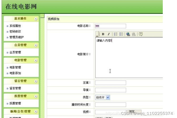 网站内容管理系统后台 设计(在线电影ssh框架技术mysql.Myeclipse, )