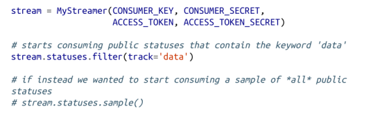 它会一直运行下去直到收集 1000条推文为止(或直到遇到一个错误为止),此时就可以着手分析这些推文了。比如,你可以用下面的方法寻找最常见的标签: