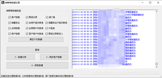软件主要包括清空明日数据,采集、数据剖析、同步用户信息、获取数据 5部份功能。