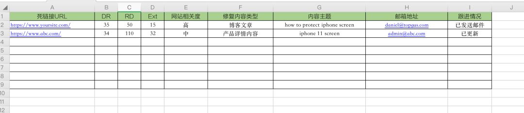 d. 把觉得可以去做的外链,使用Excel表格制定成一个表单,进行跟进。